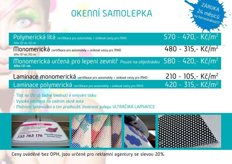 Tiskové reklamní studio ŽÍDEK tisk s.r.o. se zaměřuje na reklamní potisk. Pěkný a kvalitní potisk zajistí pouze kvalitní tiskové technologie, kterými v našem tiskovém reklamním studiu ŽÍDEK tisk s.r.o. disponujeme. Chcete okenní samolepky na které se můžete spolehnou a splní Váš požadavek vizuálně…